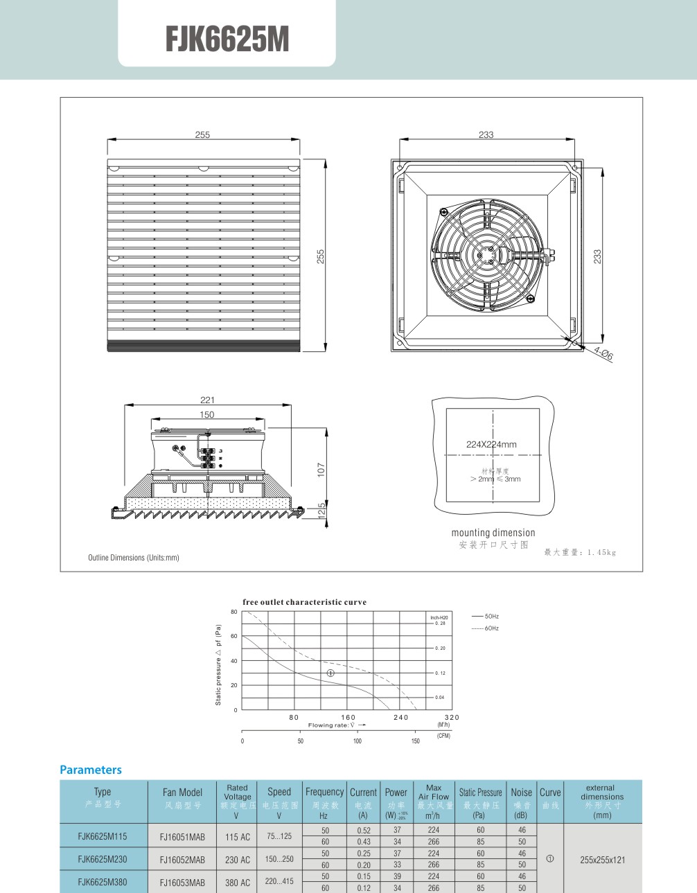 极高的安装灵活性与多功能性: 用户可根据现场通风需求(如正压送风或负压抽风),通过简单地反向安装风扇,即可轻松实现吸风或吹风模式的切换。这一设计大大增强了设备的适用性,降低了备件库存和安装复杂度。