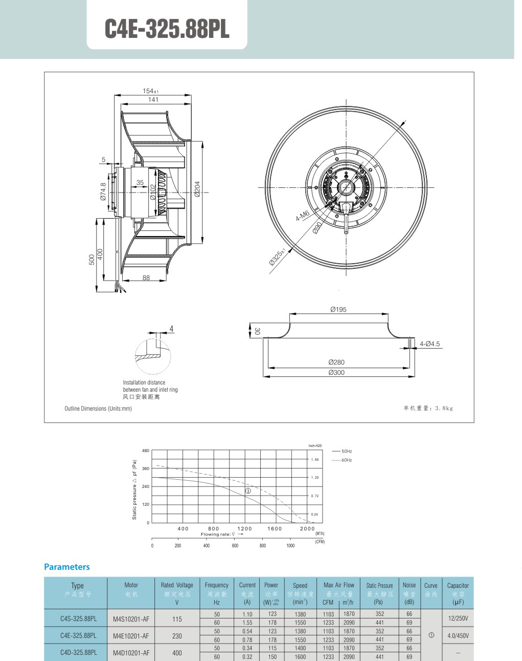 大风量输出: 直径290至380mm 的大尺寸叶轮是产生巨大风量和风压的直接保证,能够为大型封闭空间或发热量巨大的设备提供强力有效的通风散热。